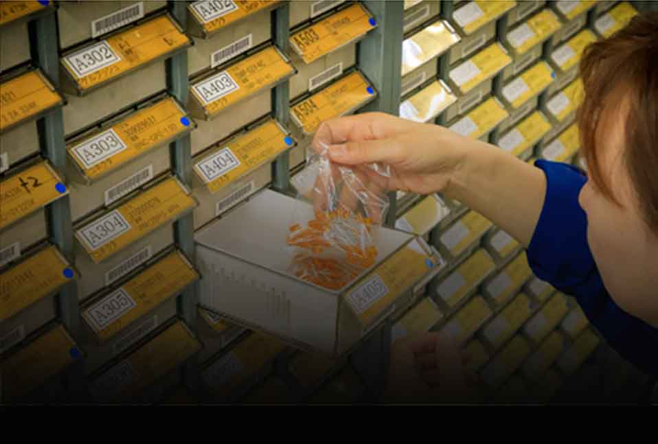 資材調達ページを見る金属素材 抵抗・コンデンサー・ICなどの電子部品等を常時約2,000種類超保有しています。